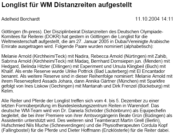 Distanzreiten-Spitzensport" entstand. 1998 wurde aus dem Pilotprojekt der