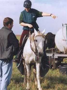 mich und mein Pflegepferd Fernando bei unserer (noch) Hauptbeschaeftigung, der