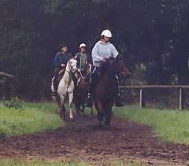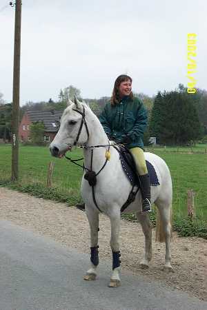 Hallo, ich bin Corinna Lenhard, 36 Jahre jung. Ich wohne in Duisburg und mein größtes Hobby ist das Reiten. Auf dem Foto seht ihr mein Pferd Marakesch. Bei Distanzritten hat er bis jetzt ca. 1000km hinter sich gebracht, ich hingegen etwa 1300km. 2000 war ich Rheinland- und NRW-Meisterin; 2001 wieder Rheinland-Meisterin und zusätzlich in NRW auf dem 2. Platz. |