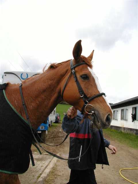 Walker und Simone,ein waschechter Hannoveranerwallach,der lieber laeuft statt springt. ja, ich Walker sollte Springpferd werden,aber nicht mit mir.nach 2,5 Jahren hat meine Simone es dann aufgegeben,nachdem wir 2000 in Harbansen unsere erste Distanz über 30 km geritten sind und gleich dritte worden.im Jahr 2001 sind wir dann 4x gestartet und waren 3x in der Wertung.60km,achter,50km vierter und 25 km LG 2. da hat dann unserer lieber trosser klaus auch eingesehen das wir beide lieber durchs Gelaende laufen als zusammen ueber die Hürden zu springen. und dieses Jahr hat Simone woll noch viel mit mir vor. 3x sind wir schon gestartet und es soll noch einiges folgen. Mittlerweile werde ich bei den Voruntersuchungen nicht mehr ganz soll doll bestaunt,obwohl letztens wieder jemand meinte"der hat doch bestimmt 180 cm stockmass"aber es sind nur 172 cm,aber ich kann halt ganz schoen angeben.Und laufen kann ich auch. also bis dann Walker und Simone |